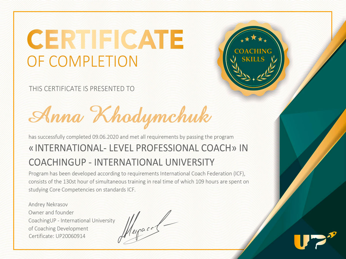 Посмотреть подробное резюмеAssociate Certified Coach (ACC)
